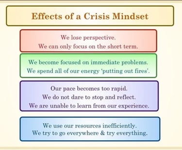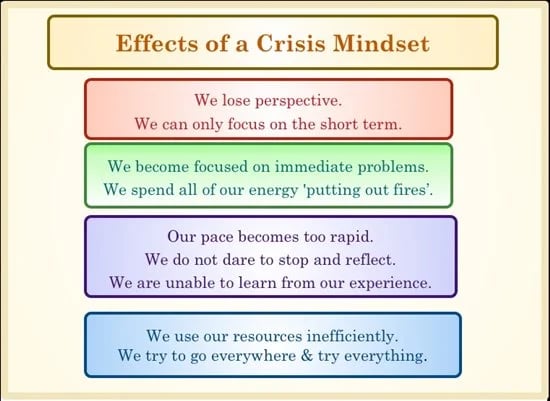 When we are in a crisis mindset, all our energy goes into managing the moment.